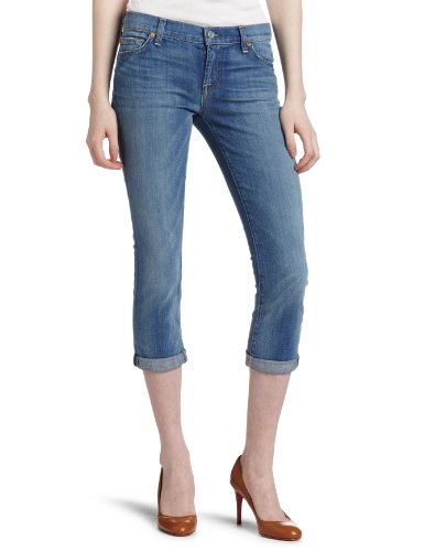 7 For All Mankind Women's The Skinny Crop And Roll Jean in Distressed Azul, Distressed Azul, 32