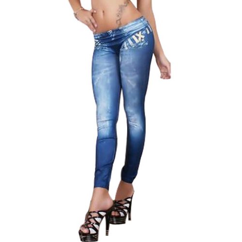- New Stylish Denim Look Faux Jean Blue Leggings Tights Pants Jegging