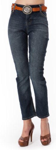Plus Size Sassy Skinny Denim features classic five pocket styling, rhinestone accents, and a removable woven belt.