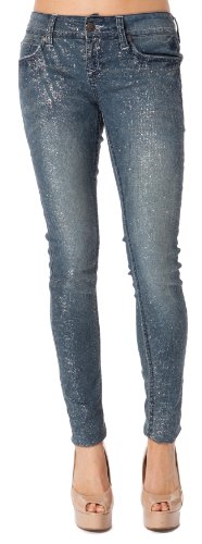 Super stretch denim jeans in sassy skinny fit with a flattering glitter finish. Denim is also subtlety sandblasted and whiskered for a sophisticated look.