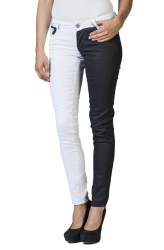 These Rhinestone studded two tone colored skinny jeans are the perfect addition to your fashion wardrobe! These uniquely designed skinny jeans have extra spandex to ensure a super sexy fit! Button fly, zip closure low rise jeans. Machine wash cold.