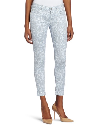 7 For All Mankind Women's Victorian Lace Crop Skinny Jean in Light Blue, Light Blue, 31