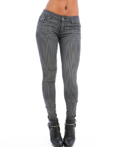 Be a trendsetter with our Stripe Skinny Jeans. They feature a perfect skinny tapered jean with vertical stripes that are sure to turn heads! They include a natural waistband with belt loops, front and back functional pockets, with a zipper and button closure. Wear them with a chiffon top with a contrasting pattern to get a trendy look.