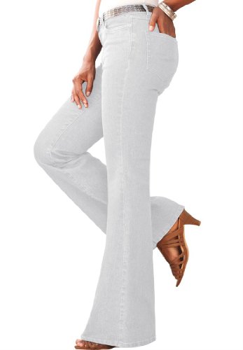 5-pocket styling and invisible stretch waist. Cotton/spandex. Machine wash. Imported. By Denim 24/7. Longer rise in the back (no more worries when bending over!) Flattering pocket placement Modern fit Inseam about 36" Plus size women's tall denim - tall flare jeans with invisible stretch